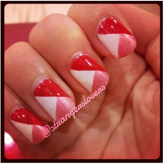 A simple taped mani with using red, pink and white polish. Kind of lazy to do any other designs oops.